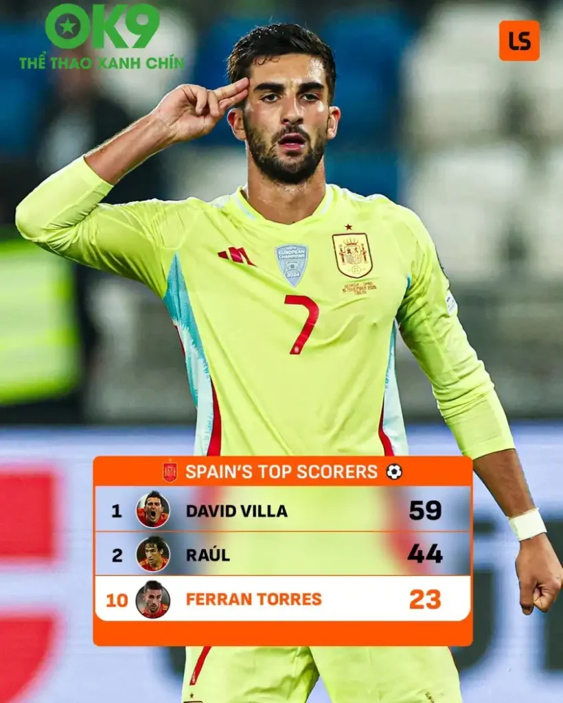 Trong trận cầu hủy diệt Georgia với tỷ số 4-0 tại vòng loại World Cup 2026, Ferran Torres đã nổ súng, nâng tổng số bàn thắng cho “La Roja” lên con số 23. Một thành tích quá đỗi ấn tượng, chính thức đưa anh sánh ngang hàng với những tượng đài của bóng đá Tây Ban Nha như Sergio Ramos và Alfredo Di Stefano. Thử hỏi có ai mà không “nở mũi” cho được?
